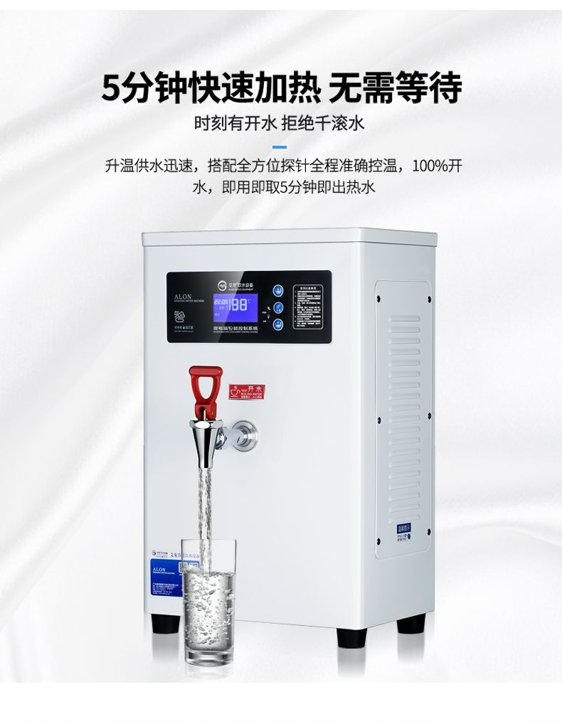 雙核步進加熱分層煮開(雙高效步進式開水器,步進加熱,分層煮開,出水為百分之百開水)